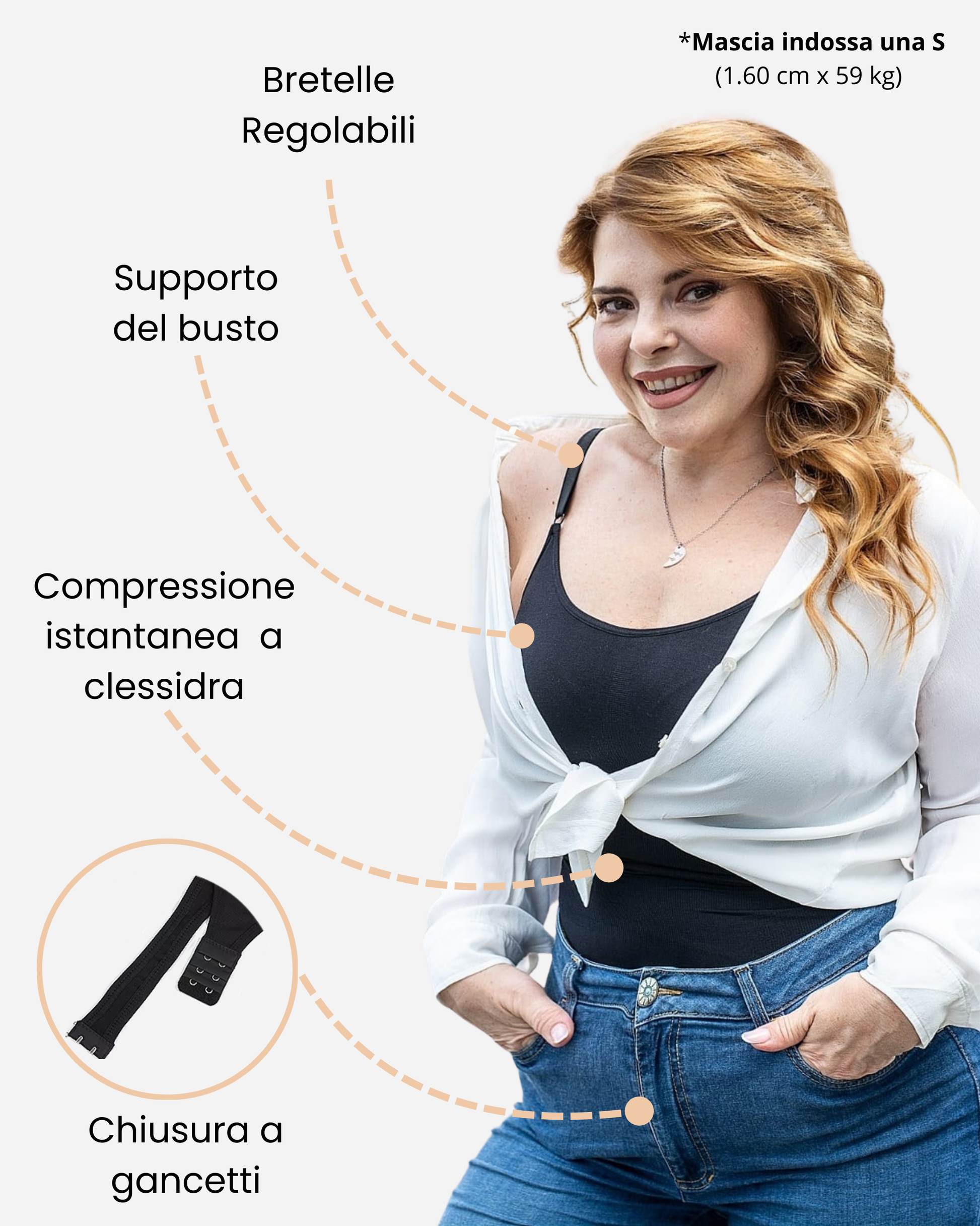 Il nostro body è studiato per un'unica missione: comprimere e scolpire il tuo girovita, garantendo una riduzione visibile e certificata fino a 3 cm nel momento esatto in cui lo indossi.